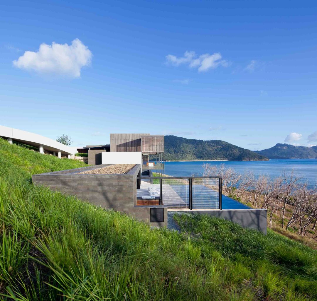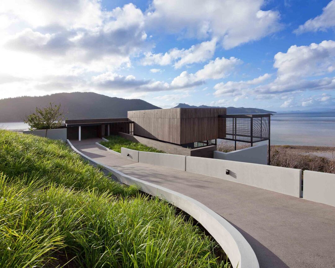 This 1,100m² luxury residence was constructed from reinforced concrete with pebbled roof and extensive use of glass and timber battening. A Kerry Hill Architect design, the house was the first of 21 villas to be developed on Hayman Island and owned freehold by the public.