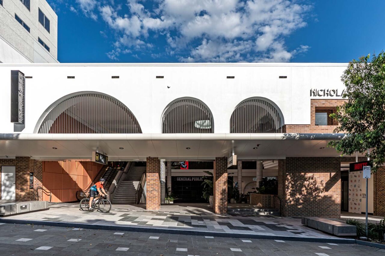 Construction faced logistical challenges such as full exposure during re-roofing, weather events, crane and pump setups, and managing concrete decay. With no access via Nicholas Street, all external façade and internal lobby works were completed via the rear entry. Full containment zones were established for mould removal, allowing other works to continue. Reinspection after stripping revealed the need to remove tiered concrete seating and rectify inground drainage.