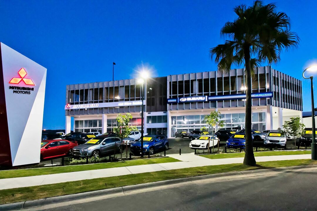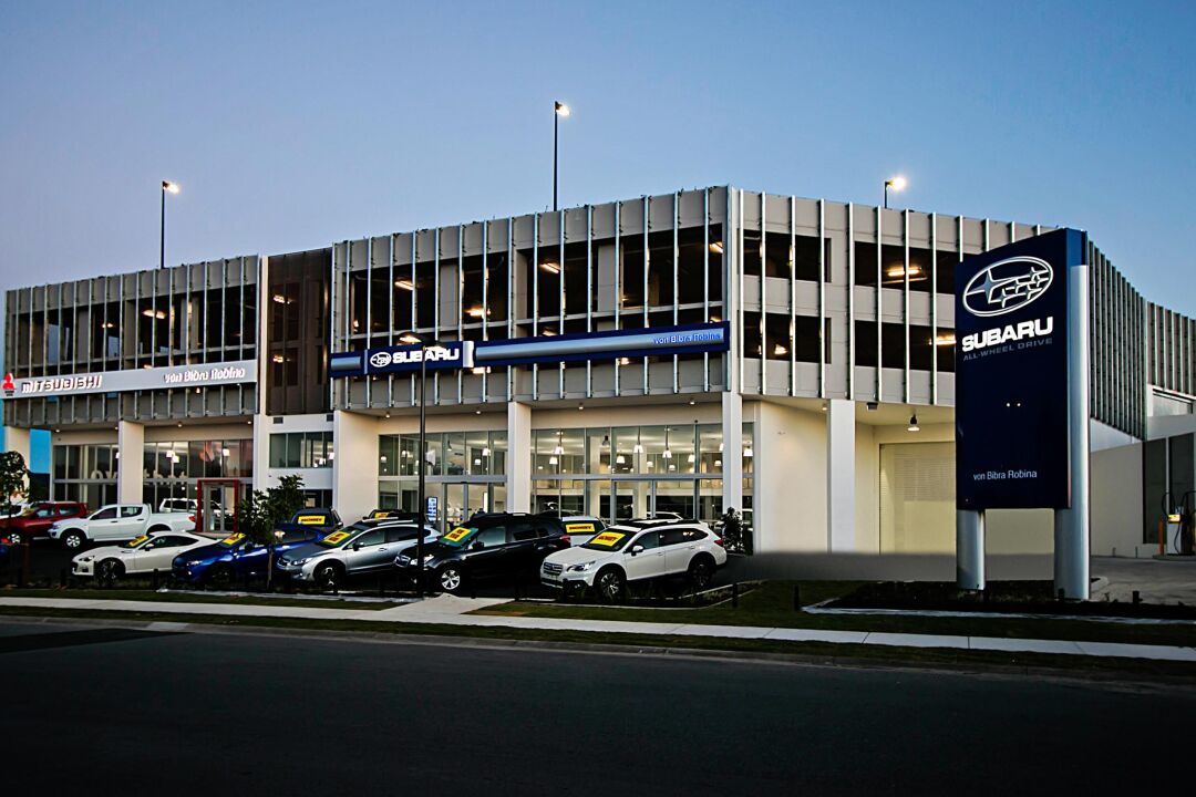 This project was the fourth stage for Von Bibra Motors in the Robina Automall development. The building is a four storey concrete structure with the ground floor comprising new showrooms for Mitsubishi and Subaru with a 1450m² detailing bay to the rear.