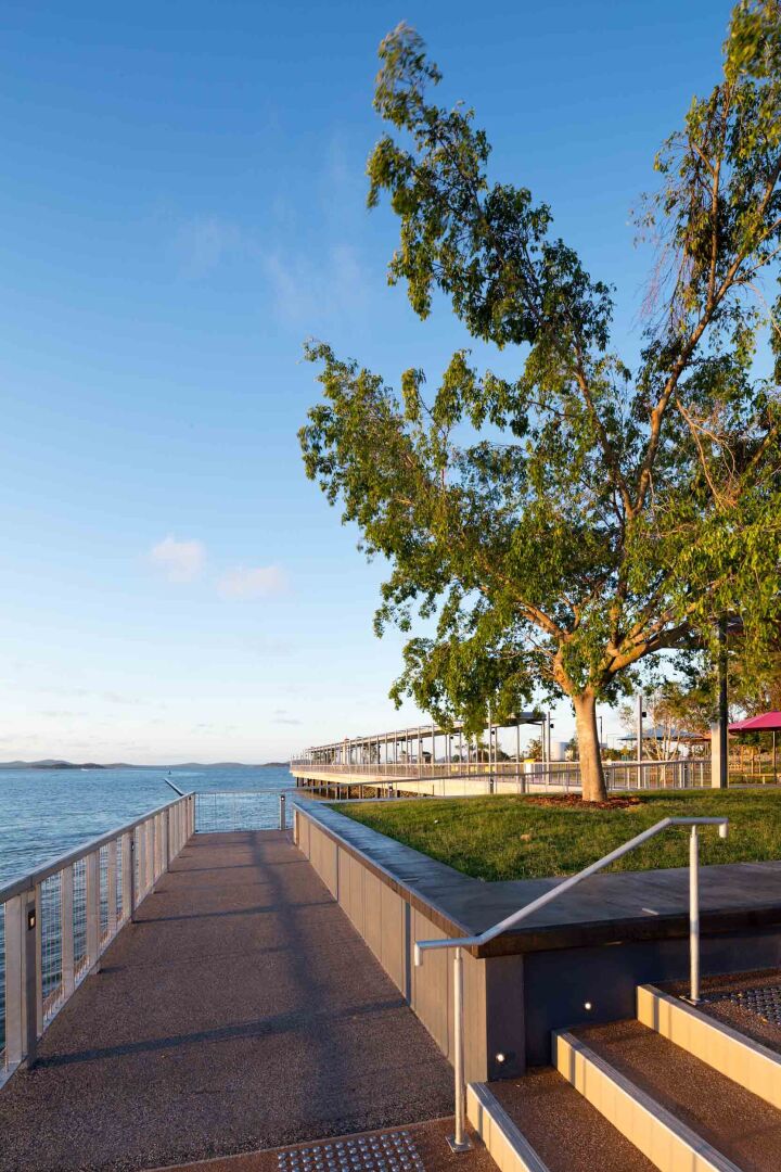 The Gladstone Ports Corporation awarded Hutchinson Builders the East Shores Stage 1A project, which comprised the construction of the first part of Gladstone Coal Exporters Maritime Precinct's major foreshore development. It included the realignment of Flinders Parade, cantilevered boardwalk, 400m of armour rock sea wall, wet dock for the HMAS Gladstone, public utility plant, family water play park, public facilities building, car parking and a new walkway up Auckland Hill.