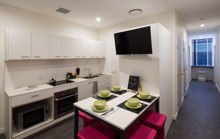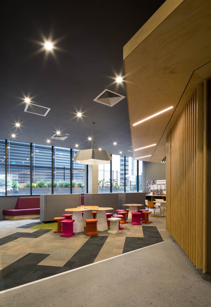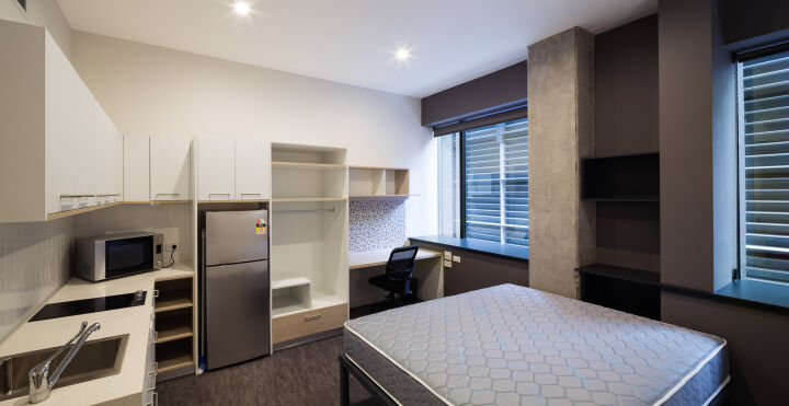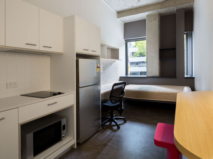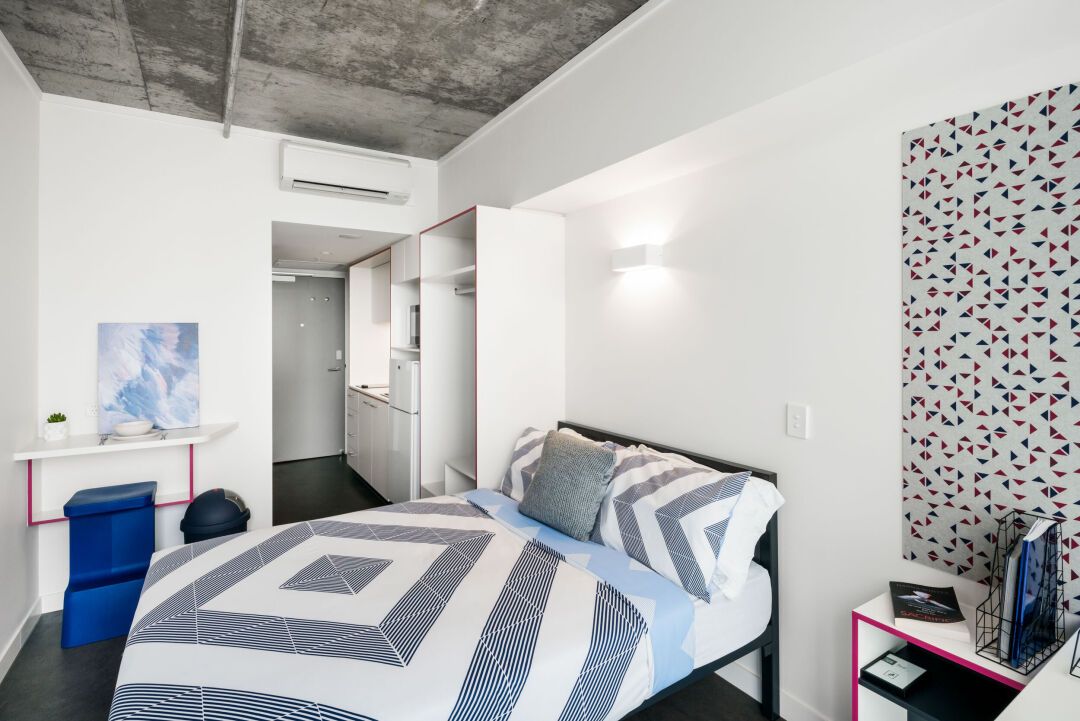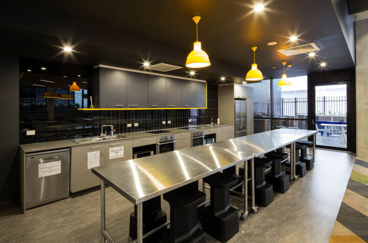 Completed in 2016, the opposite Student One residences complex at 363 Adelaide are an outstanding example of Hutchies' inner city refurbishment capability. The modern design offers a new level of student accommodation, with a range of premium living options for up to 687 occupants. Hutchinson Builders worked with our Client to re-purpose the existing office building to help create the unique Student One experience. From single and twin studios to single rooms in five bedroom apartments, the thoughtfully appointed rooms feature air conditioning, high ceilings and blackout blinds, with many including ensuites. Communal areas incorporates breakout spaces, media rooms, gym, outdoor barbeque and communal kitchen. There are also 160 car parks for rent.