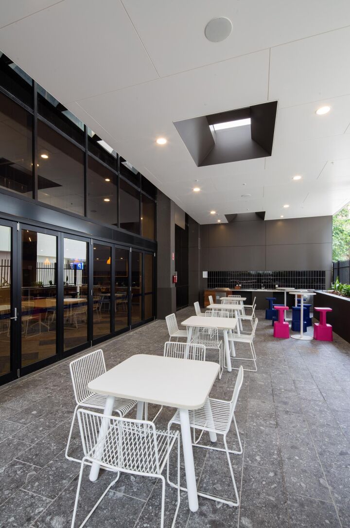 On the strength of our work on the Adelaide Street refurbished Student One residences (featured below), Hutchinson Builders was selected to build a brand new development at 38 Wharf Street (on the adjacent corner) in the heart of Brisbane's CBD. The 41 storey tower will boast stunning views for many of its 750 residents, who will also enjoy the benefits of a unique student living experience. Abundant with spaces for study, group meetings and socialising, the communal areas at Student One Wharf Street include a library, music rooms, rooftop garden, outdoor media space, gym, outdoor barbeque and two laundries.
