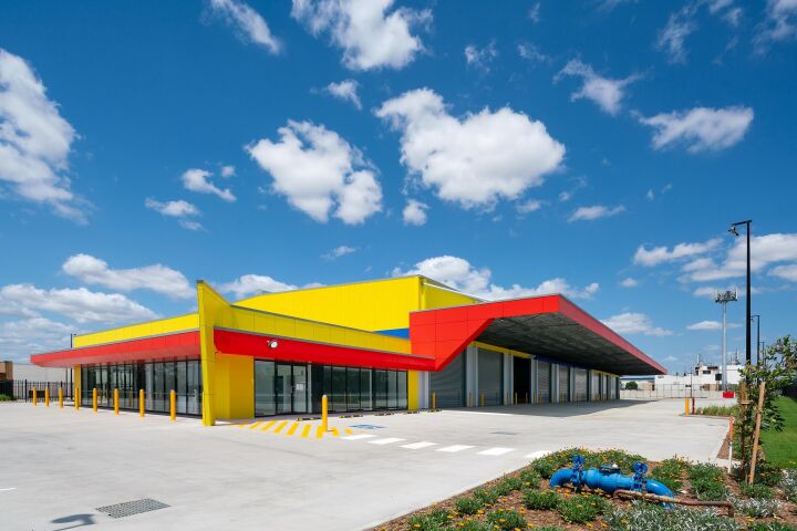 The Darra Industrial Project is a large warehouse development located at 2580 Ipswich Road Darra. This project involved the re-development of the iconic Darra Denmac Ford site encompassing some 29,000m², into two industrial warehouses providing new facilities for local Brisbane businesses. The warehouses have wide spanning structural rafters providing for light weight construction and have cantilevered awnings to maximise roof covered area to each site.